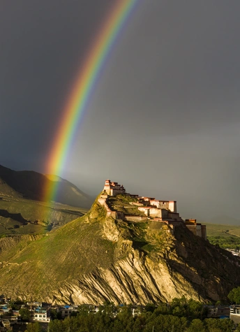 西藏江孜宗山古堡遇见彩虹。