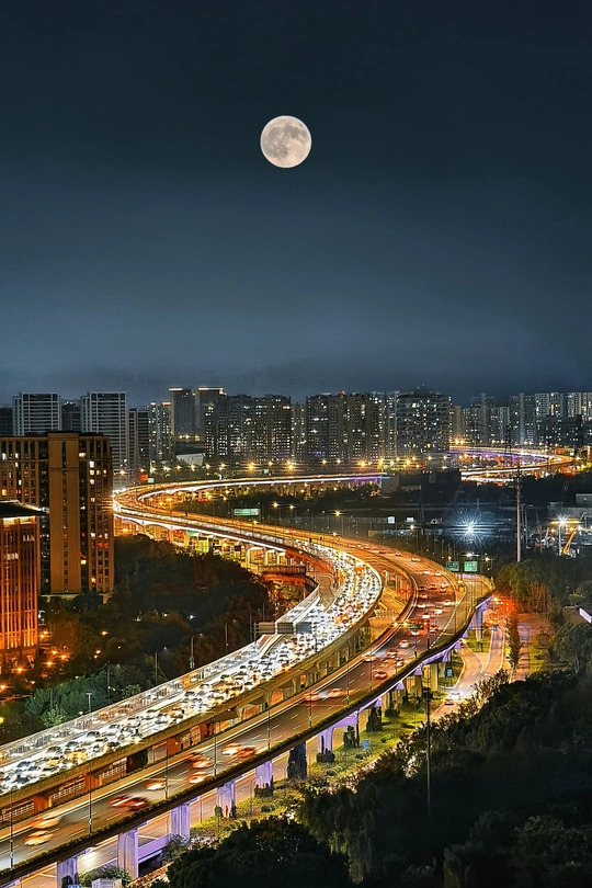 夜幕降临,一轮明月从地平线升起,犹如一颗璀璨的明珠,照亮了夜空。它高高地悬挂在天际,如同一座高架的灯塔,指引着归途的人们。月光如水,倾泻而下,洒满大地,仿佛为这宁静的夜晚披上了一层薄薄的银纱。而那流光溢彩,映照着苍穹,如同一幅流动的画卷,绚丽夺目。明月与流光相互辉映,构成了一幅壮丽的夜景。人们在这美丽的夜晚,仰望星空,感受着明月与流光的魅力,仿佛置身于一个梦幻的世界,心中充满了宁静与美好。