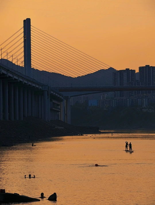 虽说已到九月中旬,但山城的热度依旧不减。暮色时分,人们纷纷沐浴在嘉陵江的清凉之中,抛开一切烦恼,尽情享受此时此刻的惬意时光。