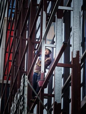 #祎璠纪实# #手机365-2899# 从事钢结构建筑的油漆工,犹如常年生活在钢铁森林中。