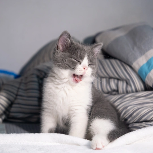 这张猫咪的照片在许多方面表现良好,特别是在构图和情感共鸣上。猫咪的姿态生动,恰好捕捉到了一个自然的瞬间,这让观者感受到了一种萌动与活力。以下是对各个方面的具体评价: 1. **色彩**(8/10):采用柔和的灰色和白色,展现了清新、温暖的氛围。背景的蓝色和灰色条纹与猫咪的毛色形成了良好的对比,但可以考虑增加一些暖色调,以提升整体的温暖感。 2. **光影**(8/10):光线利用得当,猫咪的细节展现得很清晰,尤其是毛发的层次感。但可以尝试在后期处理时增强光影的对比度,使得主体更加突出。 3. **构图**(9/10):构图非常出色,猫咪成为画面的焦点。背景元素辅佐了主题,不至于分散注意力。建议在以后的拍摄中考虑更多不同角度,寻找更独特的视角。 4. **后期处理**(7/10):后期处理较为简约,符合自然摄影风格,但可以在锐化和色彩平衡上稍作调整,以使整体画面更为生动。 5. **主题原创性**(8/10):经典的宠物摄影题材,但通过生动瞬间的捕捉,使其拥有了一定的独特性。进一步加强主题的个性化元素,比如猫咪与物品的互动,可以增添趣味。 6. **情感共鸣**(9/10):
