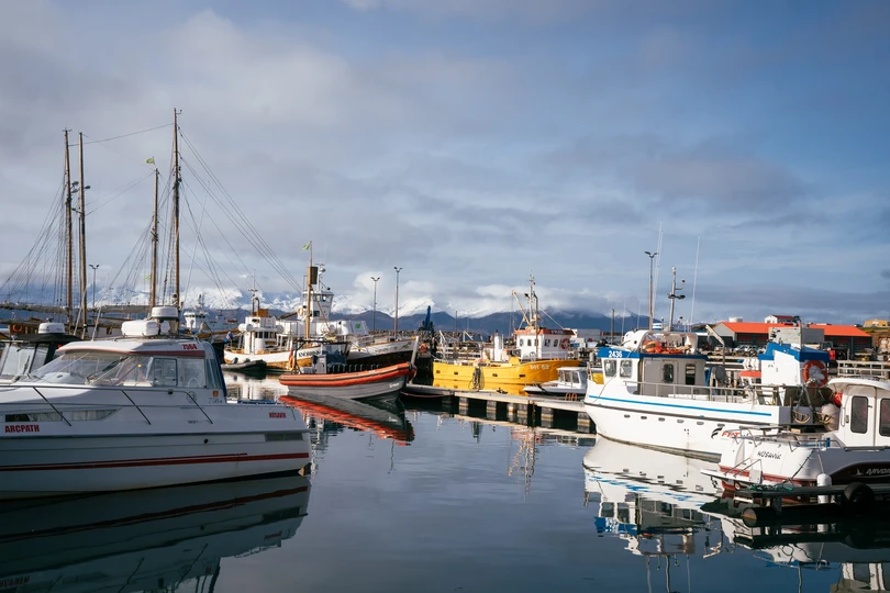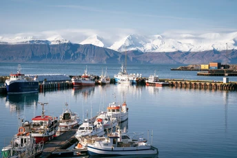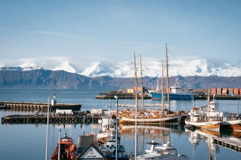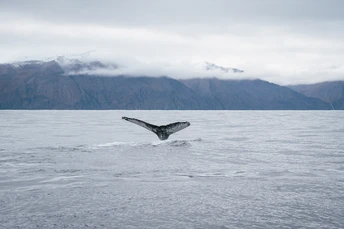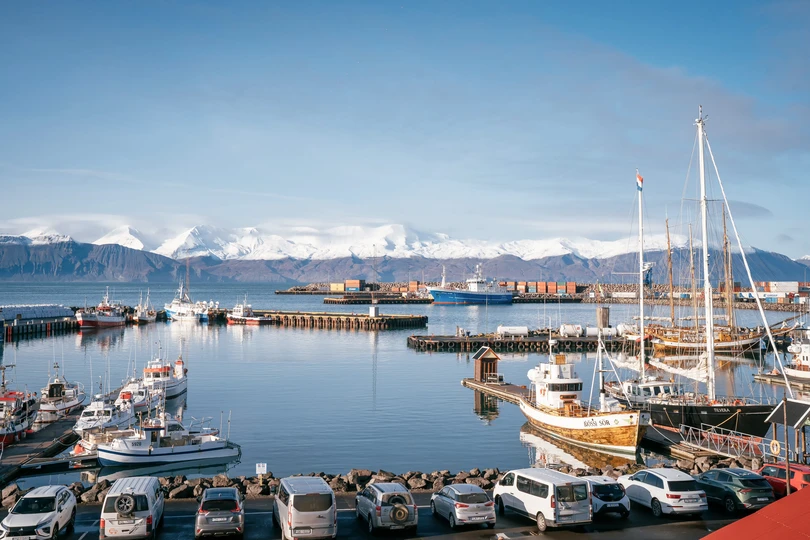 走到湖萨湾的码头,开始有很多鲸鱼的标志,中午所有的船都停靠在这里,北大西洋的水倒映着不远的雪山,透露出冰冷的淡蓝色,通透的天地甚至给我一种错觉,只要我看得足够远,一定可以看到几百公里之外的格陵兰岛。 当然了我也出海观鲸了,虽然半个船的人都在狂吐不止,幸运的是看到了几次鲸鱼,还有海豚一直在给船领航,海豚确实是一种非常人类友好的生物。
