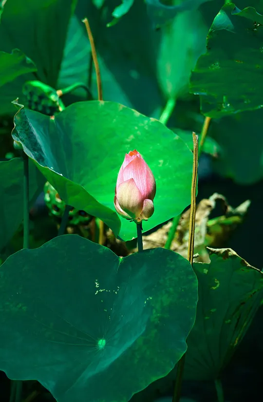 一缕阳光透过树荫不偏不倚照亮了花苞