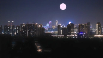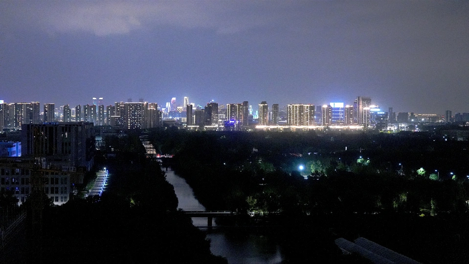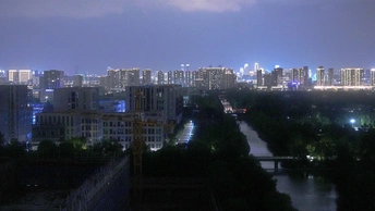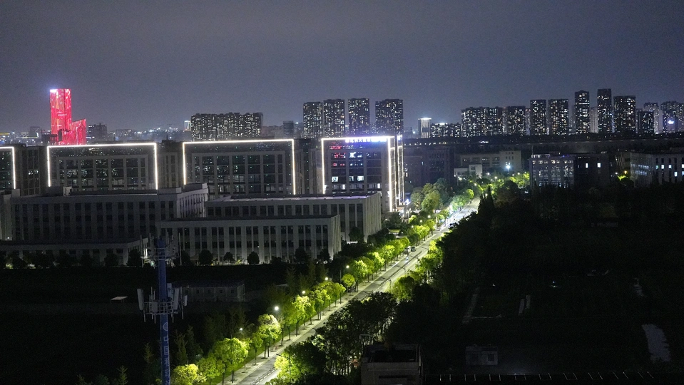 站在自家楼顶,拍摄杭州萧山区的夜景