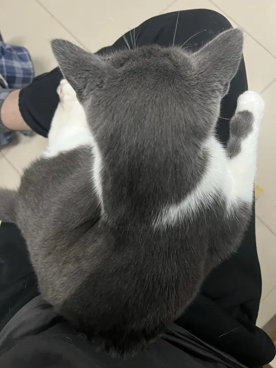 这张照片主要主题是宠物猫,其表现出了一定的可爱气息,但在多个方面仍有提升空间。 1. **色彩**:图片的色彩比较单调,突出性不足。猫的灰白毛色与背景色接近,导致视觉效果不够鲜明。建议使用更具对比度的背景,或尝试后期调整色调使主题更加突出。 2. **光影**:照片缺乏明确的光源,整体亮度偏低,影响了细节的表现。可以尝试在自然光较好的环境中拍摄,或适度使用人工光源来营造更生动的光影效果。 3. **构图**:构图略显随意,猫咪的视角和身体部分被截断,导致主题的不完整感。应考虑采用更为经典的构图法则,如三分法,确保生动的细节得以完整体现。 4. **后期处理**:后期处理相对简单,缺乏锐化和色调调整,使得整体画面平淡无奇。可以尝试适度锐化细节部分,同时增强对比度,让整体画面更为生动。 5. **主题原创性**:虽然宠物照片本身具有一定的亲和力,但从创意角度看,显得较为普通。可以尝试更具个性化的拍摄角度,或者结合动物的动态表现,展现不同场景。 6. **情感共鸣**:照片提供了宠物与主人互动的感觉,但没有强烈的情感表达。可以通过选择更具情感交流的瞬间来提升观众的共鸣,例如捕捉