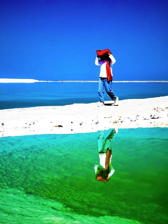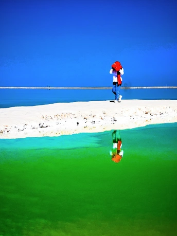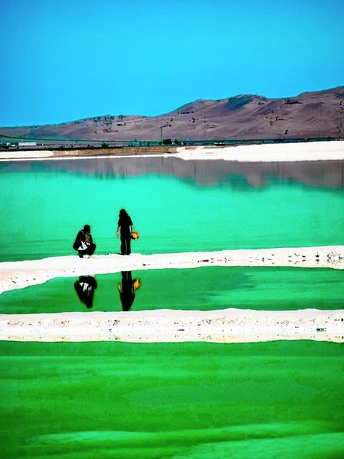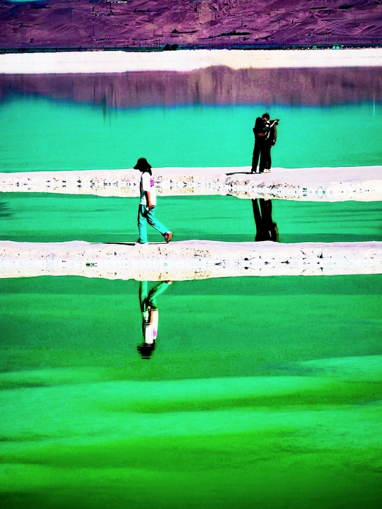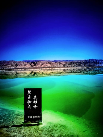 茫崖翡翠湖位于青海省海西州茫崖市尕斯湖东部边缘,花土沟镇西南侧,距镇政府所在地约23公里,南依昆仑山,北靠阿尔金山,是一个富饶而美丽的人工盐湖,已经成为自驾游打卡的热门景点。茫崖翡翠湖面积约26平方公里,平均深度0.5米,属于硫酸镁亚型盐湖,这里出产品质较好的钾、镁、锂等多种元素。 翡翠湖,如同镶嵌在高原上的巨大翡翠,美丽得令人惊叹。湖水清澈,碧绿如玉,远看像一块无暇的翡翠,近看则像一面镜子,闪着迷人的光泽