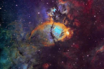 鱼头星云(FishheadNebula)因为形状神似鱼头著称,是位于仙后座北部的恒星形成区的一个发光气体和尘埃云,IC 1795与仙王座内著名的双星团相距不远,位于心脏星云(IC1805)的旁边。这个星云距离我们约6000多光年,属于一个更大的恒星形成复合体。其中红色的是遥远的星云中硫元素电离发出的光,而蓝色的是氧元素电离的杰作。 Touptek533M➕80ed sho(哈勃色)三通道累积曝光时间3.5h