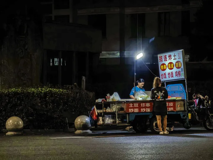 凌晨四点半,大地还是一片漆黑,一个小摊,不知道是刚刚开始营业还是从昨晚坚持到凌晨。