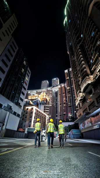 重庆拍摄来福士,凌晨看到的三个工人,向着自己曾经建设的钢铁大厦走去