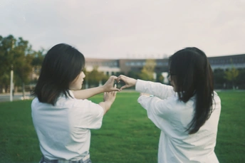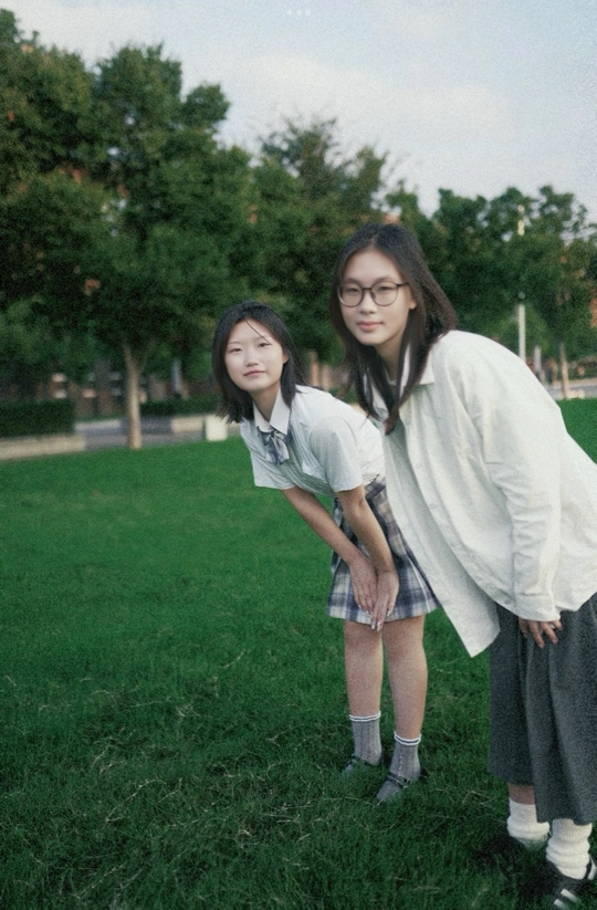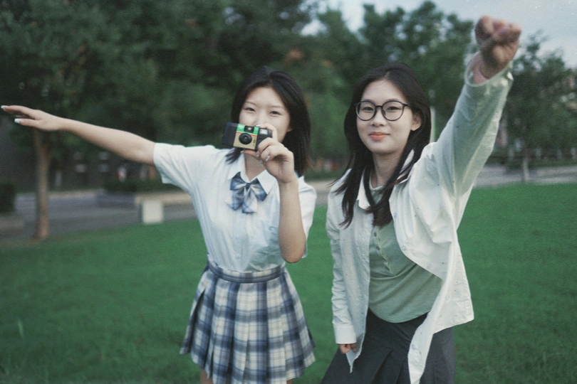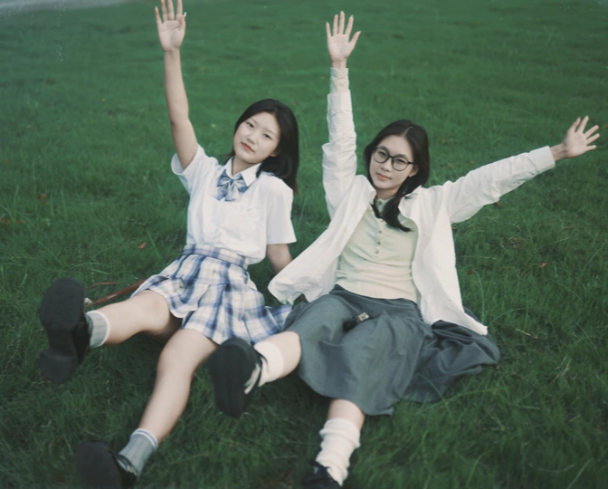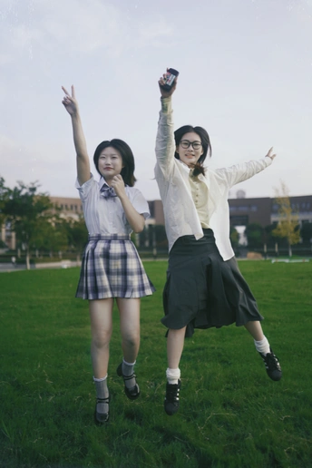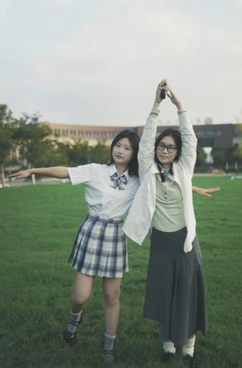 在学校里拍的活力双人照