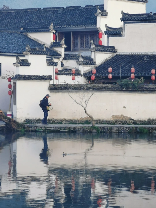为了能看到还没有人从众的宏村,起个大早,果然看到了安静,刚刚苏醒的样子的宏村。安静,慢生活,惬意!