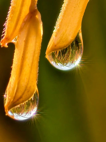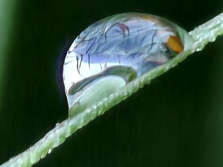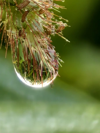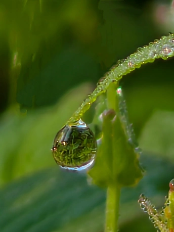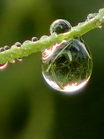 清晨的露珠晶莹剔透,一颗小水珠也能折射出一个唯美的世界!