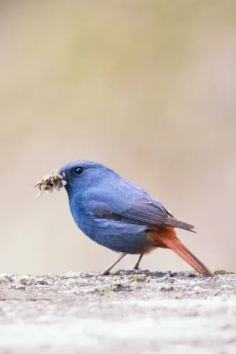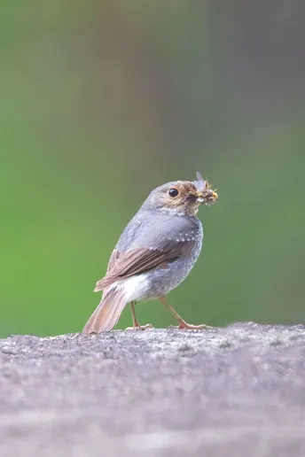 漂亮的北红尾鸲正在找寻食物育雏。