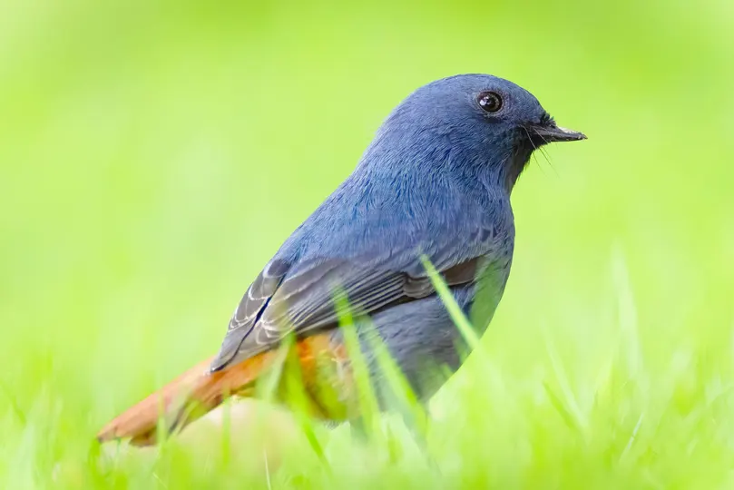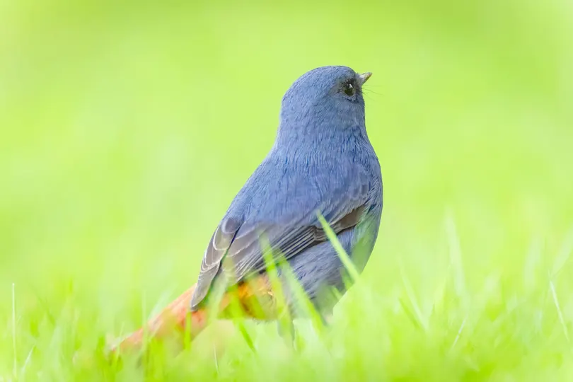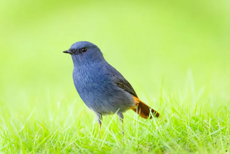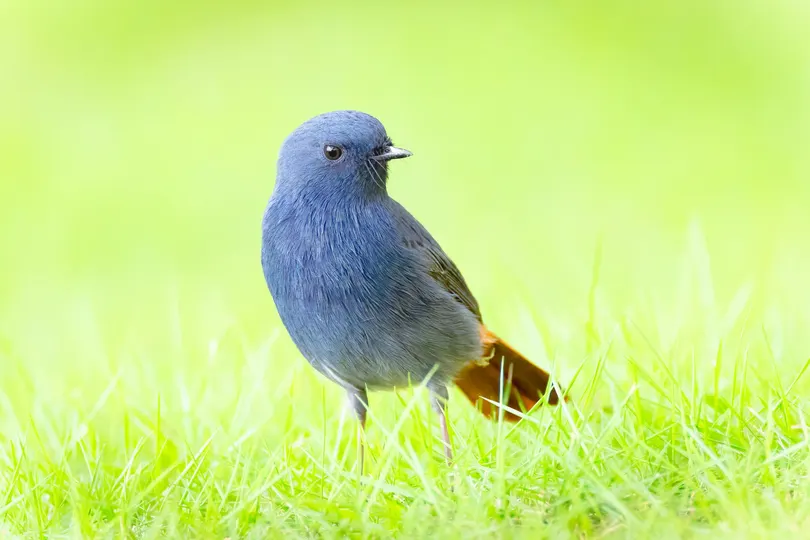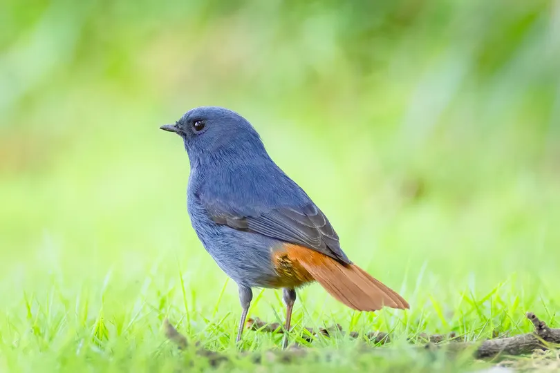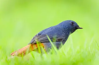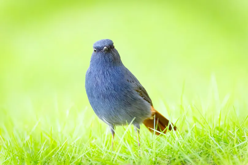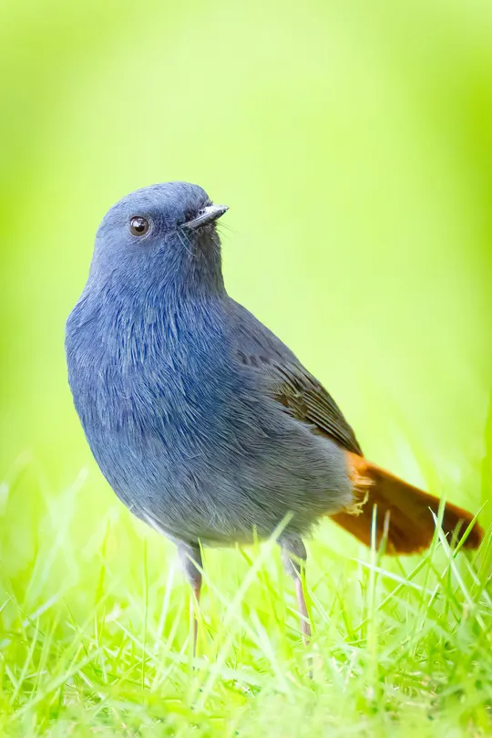 📸 在小区楼下绿化带里发现一只呆鸟,不怕人,这货学名叫“红尾水鸲”。
