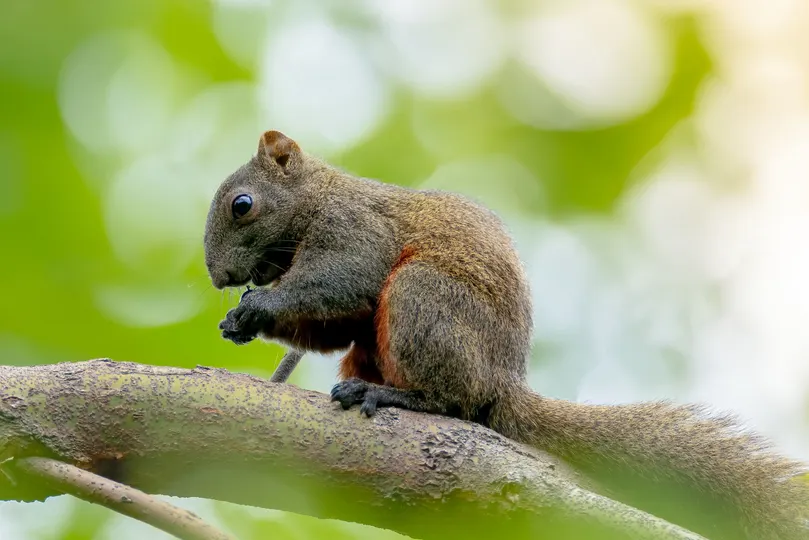 成都植物园的赤腹松鼠,正在享受它采集来的樟树果实。