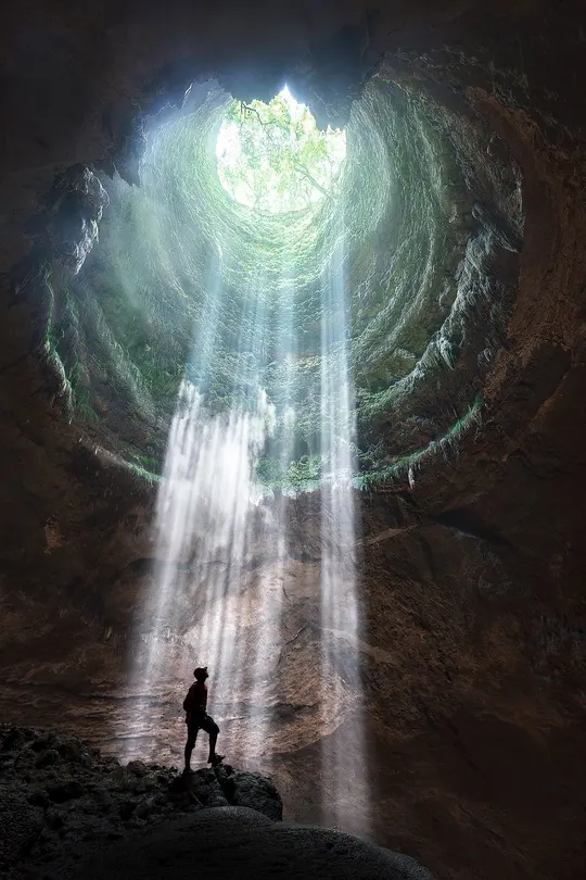 第一次下到洞穴里,过程挺刺激,阳光照射进洞穴形成的光柱美极了!