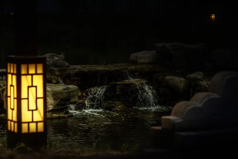 灯光悠悠映夜阑, 流水潺潺韵如弦。 光影摇曳思无尽, 水声轻奏梦相连。