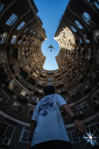 飞机掠过筒子楼的瞬间,仿佛将天空与尘世连接在了一起。楼底的居民抬头仰望,那银色的巨鸟划破长空,留下一道永恒的痕迹。在这短暂的交汇中,人们感受到了飞翔的自由与梦想的力量,生活的喧嚣与宁静在这一刻交织成最美的画卷。
