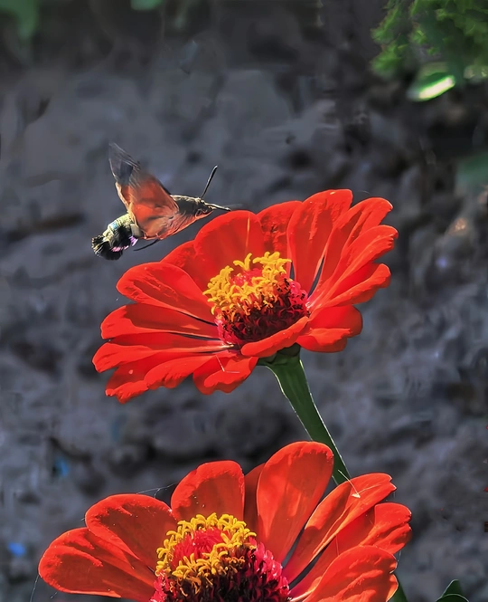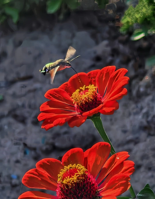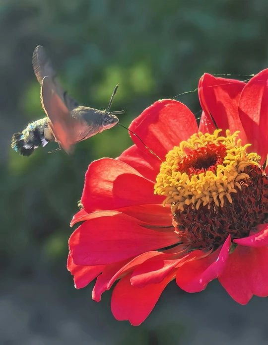 🥝作品采集 在下午五点钟时,驱车行至一十字路口,在等信号灯时,闲着无聊,不经意间发现路边绿化带里的步步高花朵上飞舞着一种稍大的蜂类,作为摄影爱好者的我那能放过这机会嘛,随把车在路边放好,走近去抓拍几张。 🥑作品解晰 到了近前观时,才发现是蜂鸟鹰蛾,好一个霸气的名字,身体比所有蛾虫都大,几乎飞翔动力十足,在视线里从未见其降落在物体上休息过,就连采蜜过程都是在飞翔的旋停中进行,用长长的吸管插入花蕊中采集,在转移时收起吸管呈卷圈状,真是大自然的神工巧匠,各从其类,形态各异。 🍏总结 自从爱上摄影,才越发的发现大自然的好多美丽和巧妙绝伦,更加惊叹不已,更加热爰生活,也点燃了更大的兴趣。