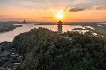 镇江焦山万佛塔日落航拍