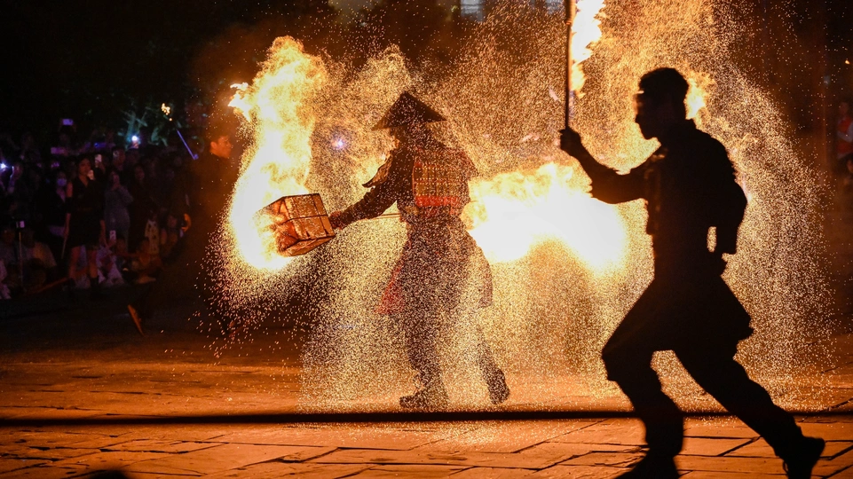 在葛仙村的夜晚 大家围在一起看火壶表演 感受那一瞬间带来的震撼