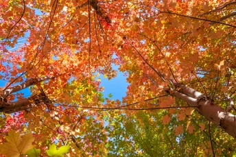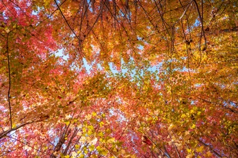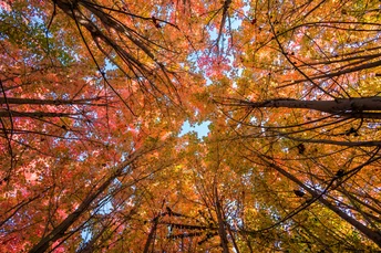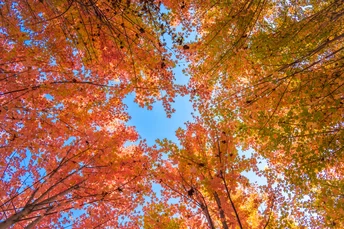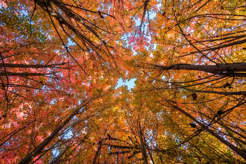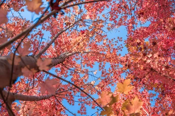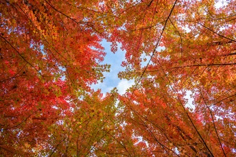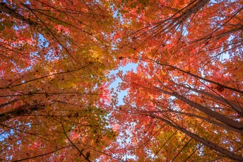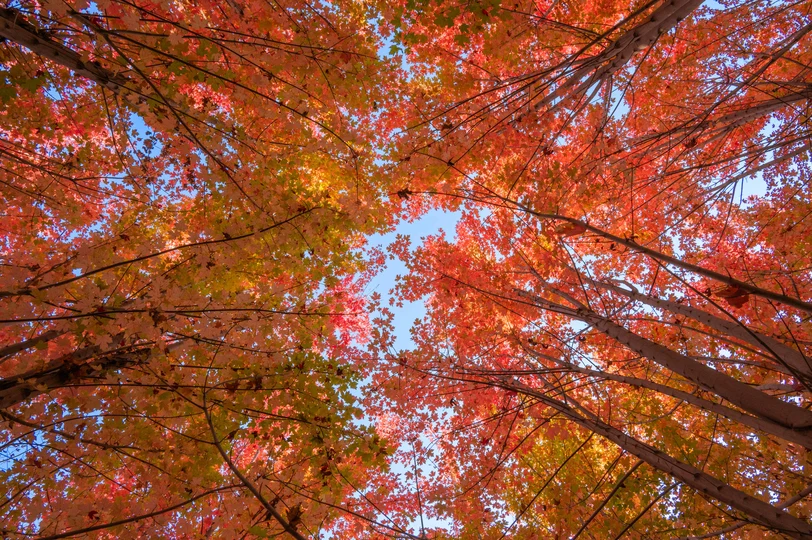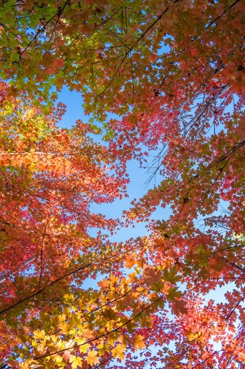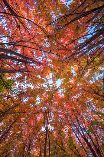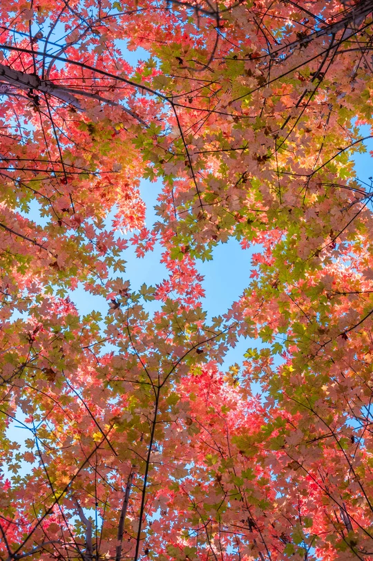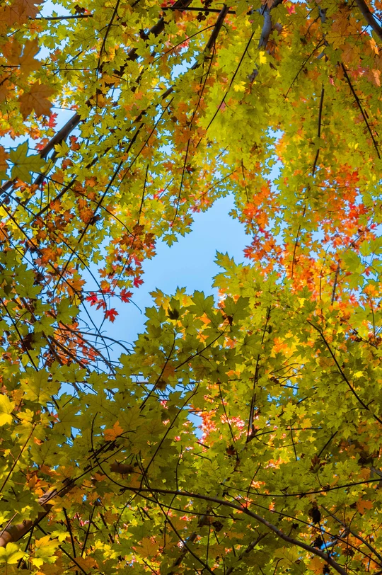 深秋来临,枫树迎来了它最绚丽,最具有魅力的时刻。当身处林中并仰视天空,此时能最直观的感受到被浓烈的色彩包围所带来的冲击力。