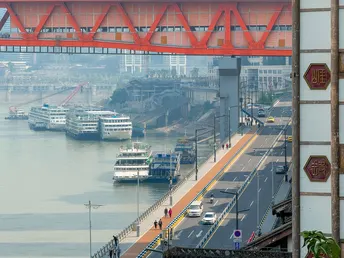 朝天门码头位于重庆市东北嘉陵江与长江交汇处,是重庆最大的水码头。