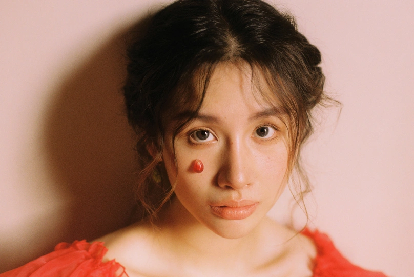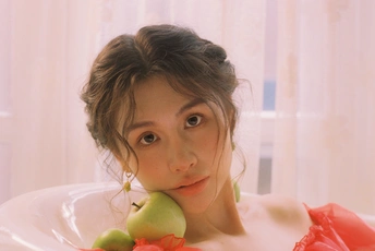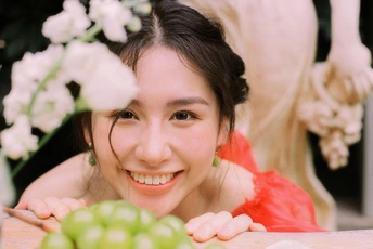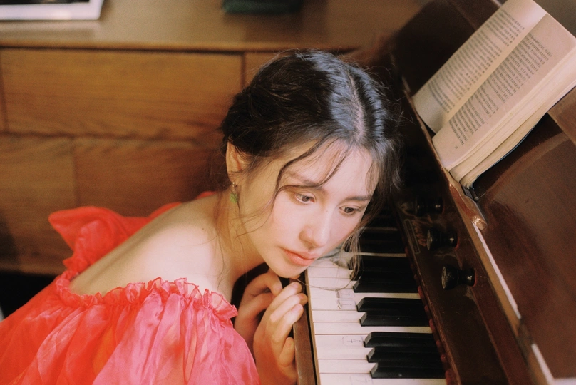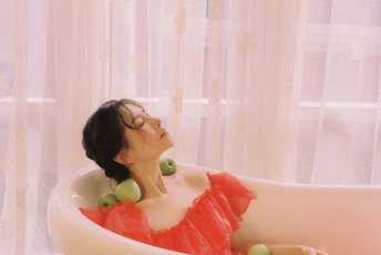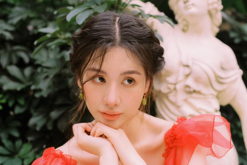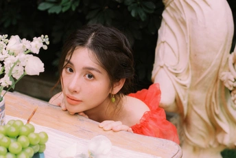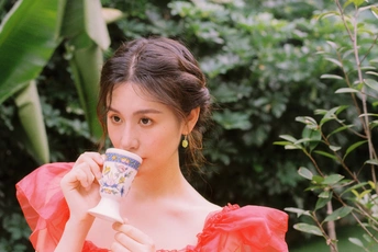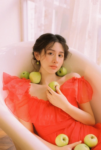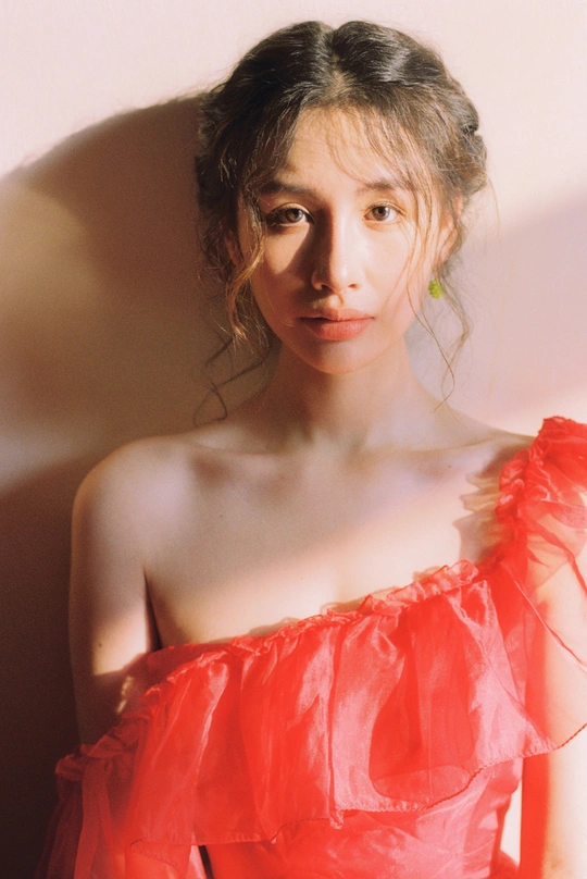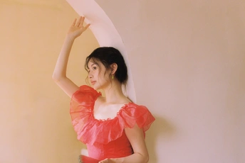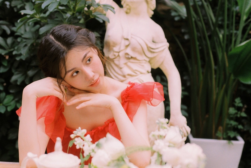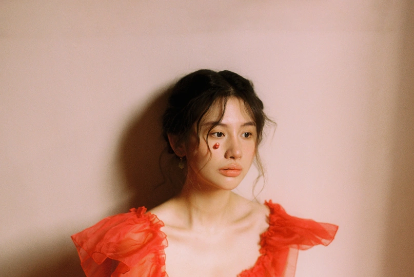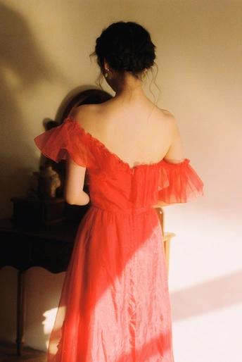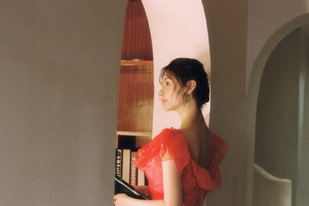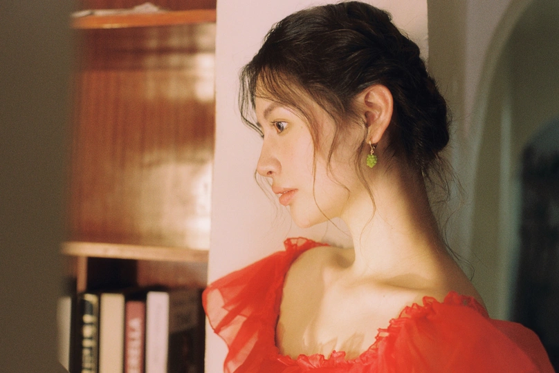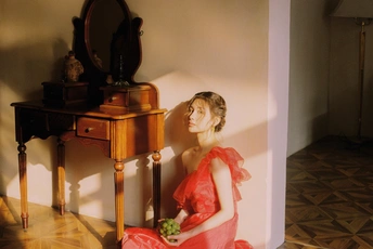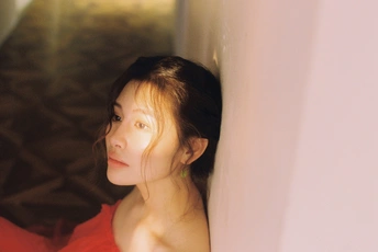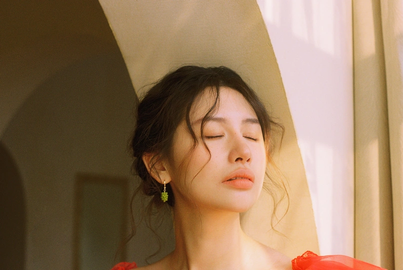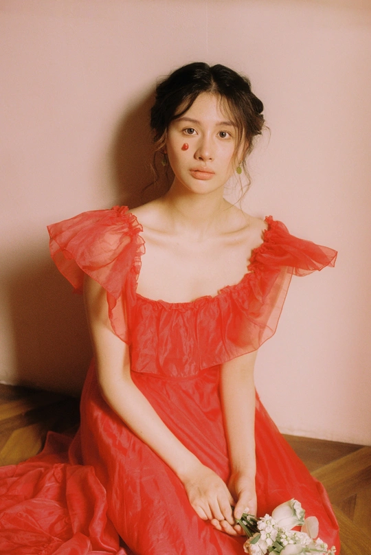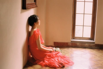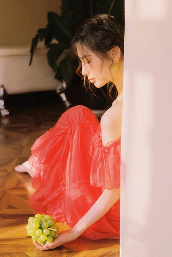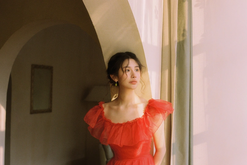 秋日,阳光和煦的时刻,庄园别墅里的红色身影。☀️ / 电影感写真分享 📷微博:倩小鱼zizi