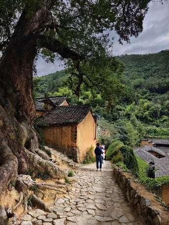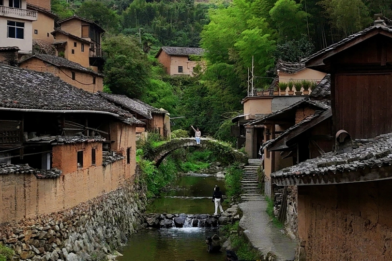 浙江省丽水市松阳县三都乡的杨家堂村、酉田村和松庄村拥有独特的古村落风貌和丰富的历史文化,建筑依山而建,金黄色泥墙瓦房在阳光下熠熠生辉,阶梯式小径、古樟树、清澈的小溪、石拱古桥,美好的山村风貌吸引了各地的游客,国庆长假期间,平时冷清的山村迎来了熙熙攘攘的游客,既有在打卡点拍照的普通游客,也有手拿相机的摄影师和身着古装的小美女,山乡美景为摄影爱好者提供了丰富的摄影素材。