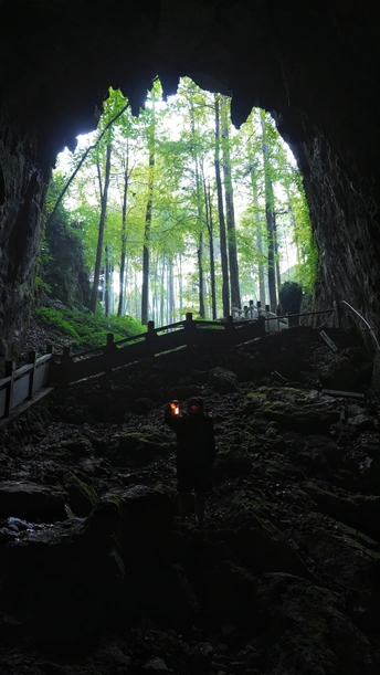 瑶琳国家森林公园 这个我用转场vlog记录的地方,充满了原始的狂野。溶洞景观虽然比较垂云通天河不那么华丽,但是古朴甚至有点乡气的灯光照出了一个好像倩女幽魂黑山老妖居住洞穴的感觉。抛开纪龙山的惊险,瑶琳国家森林公园是桐庐行中给我留下最美好印象的一处,尤其是山林徒步道,这个依原始山石树木而修,有轻微人工痕迹的上下山道路走起来真的心情愉悦。