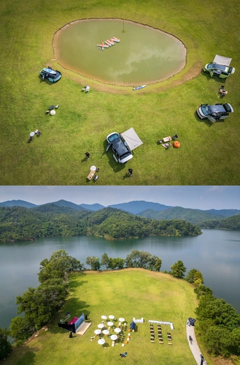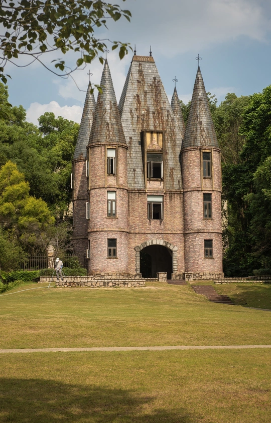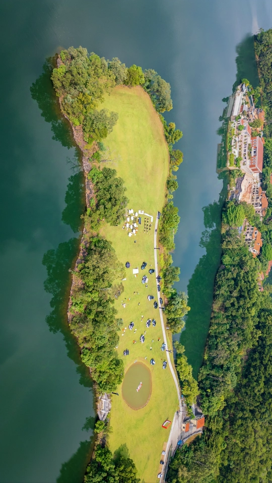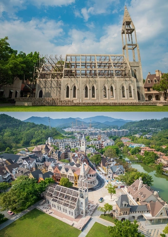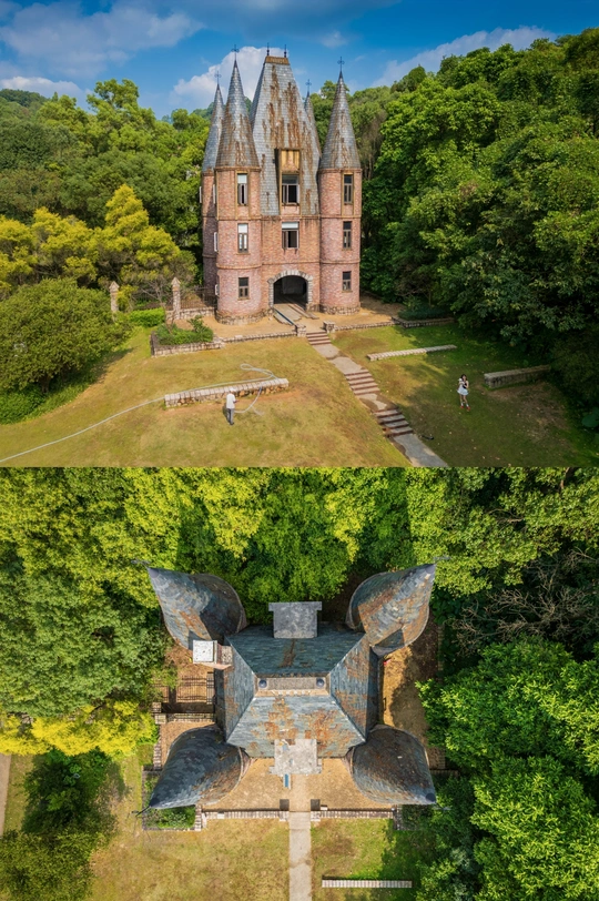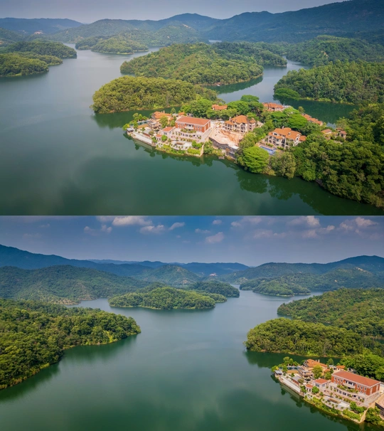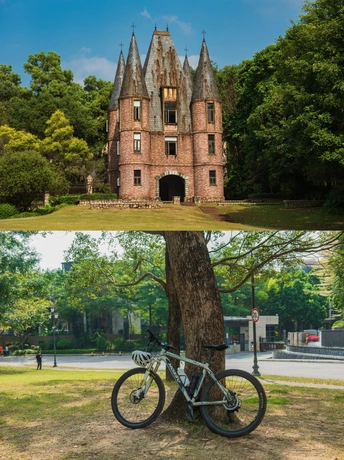 今天骑山地车逛了广州花都的九龙湖度假区,欧洲小镇和城堡是免费的网红打卡地,还航拍了“九湾潭水库”