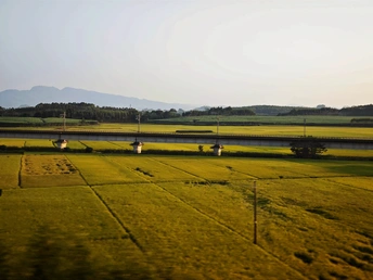 在疾驰的动车上,目光不经意间投向窗外,那一片黄灿灿的稻谷瞬间映入眼帘。成熟的稻谷在阳光下闪耀着金色的光芒,仿佛大地铺上了一层华丽的锦缎。微风拂过,稻穗轻轻摇曳,似在诉说着丰收的喜悦。这是大自然最慷慨的馈赠,是农民辛勤耕耘的结晶。动车载着归乡的游子,而这片金黄的稻田,则像是大地为我们准备的最美的欢迎礼,温暖着每一颗渴望归家和向往美好的心。