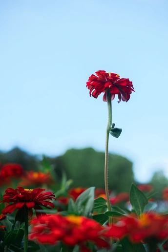 在这幅花卉摄影作品中,从色彩、光影、构图、后期处理、主题原创性、情感共鸣和思想深度七个方面进行评价如下: 1. 色彩:这幅作品的色彩运用非常出色。鲜艳的红花在蓝天的衬托下显得尤为突出,形成了强烈的视觉对比。色彩饱和度适中,让人感受到生机与活力。 2. 光影:利用自然光(尤其是侧光)的优势,使花瓣的质感得以展现。 3. 构图:构图方面,主体明显,居于画面的左侧,突出了主花的独特性。背景的绿叶也起到了良好的陪衬作用,使画面不显得单调。 4. 后期处理:图像的后期处理适度,不会显得过于生硬。整体画面的清晰度和细节处理都很好。 5. 主题原创性:花卉摄影的主题相对常见,但此作品通过花朵的独特角度和表现手法展现出了一定的原创性,特别是一朵花突出于众多花丛之中,传达了孤独与坚韧的情感。 6. 情感共鸣:作品传递出的是一种生命的顽强和绽放的美,这种情感能引起观者的共鸣。此外,花的姿态也隐喻在这幅花卉摄影作品中。 7. 思想深度:从思想深度来看,作品富有内涵,表现了生命的坚韧。但可增加一些文化或哲学的元素,让图像背后的故事更为丰富。了生长过程中的艰辛,令人思考。