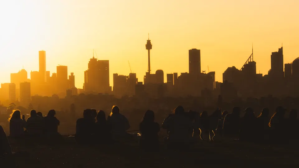 摄于Dudley Page Reverse的草地上,日落时分人们不约而同的坐在草地上等待着晚霞