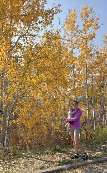 大蒂顿公园,这是一片横跨美国两州,充满历史与野性的自然奇观。在这里,大自然的宏伟与壮丽、生命的独特与多元得到了最生动的展现。路遇母子俩,母亲紫色的衣服和背景的银杏黄相得益彰,我有一种冲动,征得本人的同意,按下了快门。