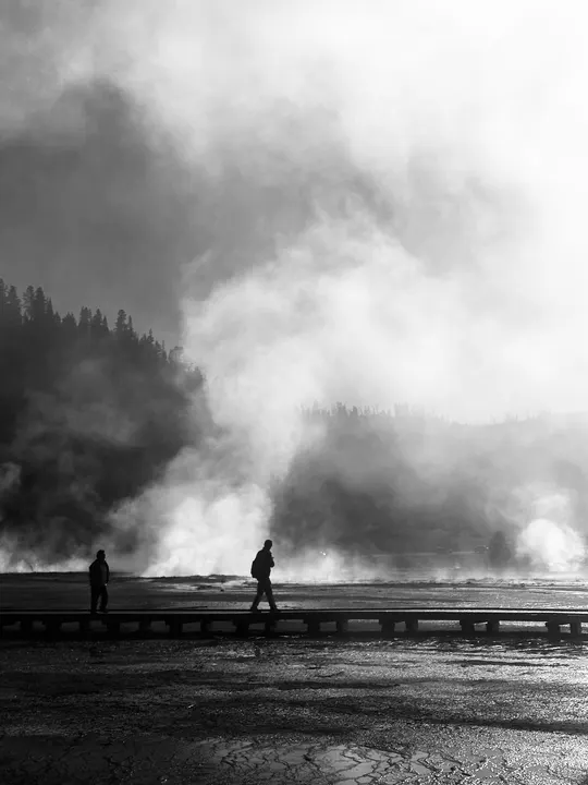 黄石国家公园的存在本身就是自然的奇迹,黄石国家公园并非只是地质奇观的展览场,湖泊和河流是这里不可或缺的一部分,他们共同勾勒出一幅和谐的画卷。再加上我们是早晨进入的黄石,当时的光和影以及它独特的地质奇观使我得到了这张照片。