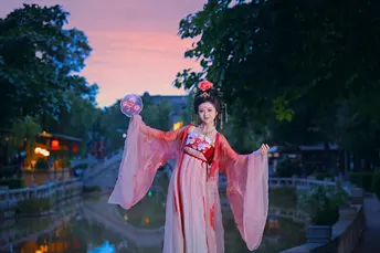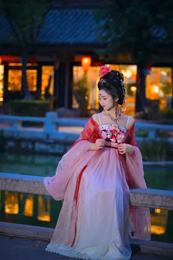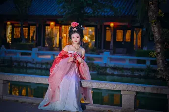 入夜小河边的女子