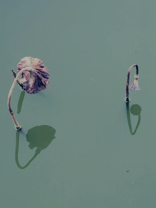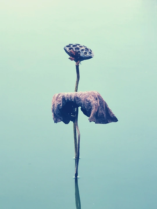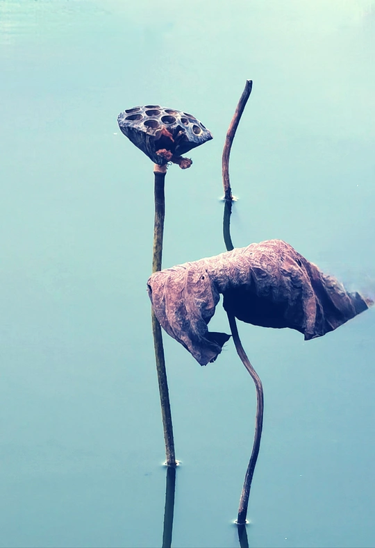 时光在残荷上留下斑驳的印记。它们不悲不喜,默默承受着秋的洗礼。曾经的娇艳已化为内敛的沉静,残荷如一幅水墨画,用简洁的线条勾勒出生命的深度,在这平凡的日子里,给人以无尽的沉思。
