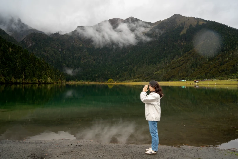 带着米拍送的帽子,去往离香格里拉独克宗县2个小时路程的无底湖,小众景点,适合来去班味