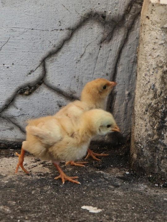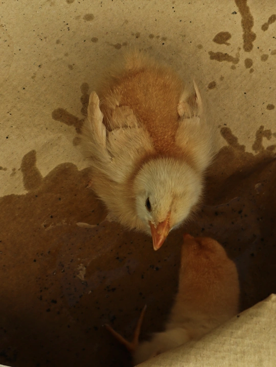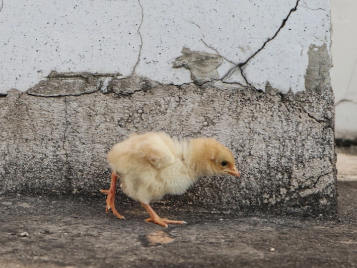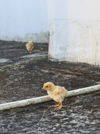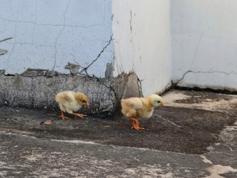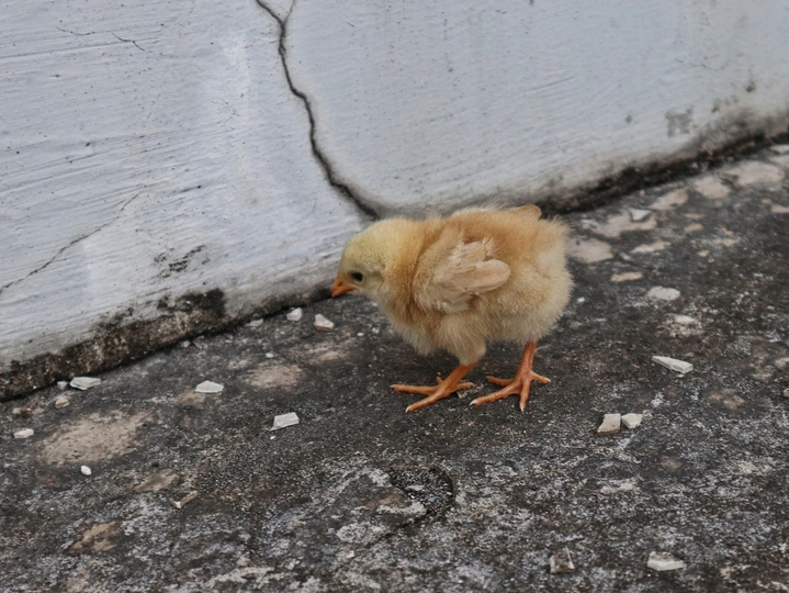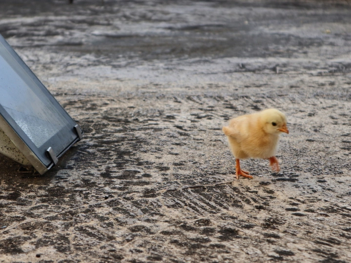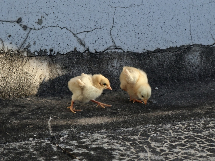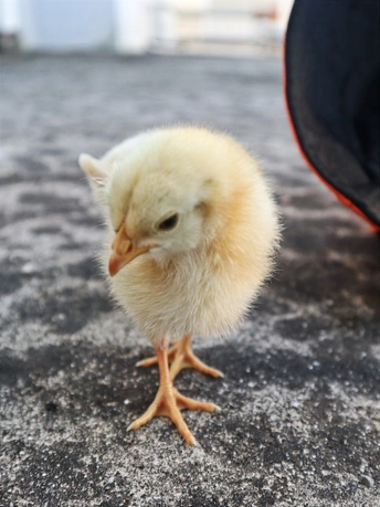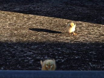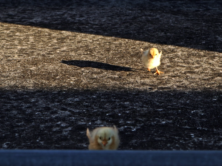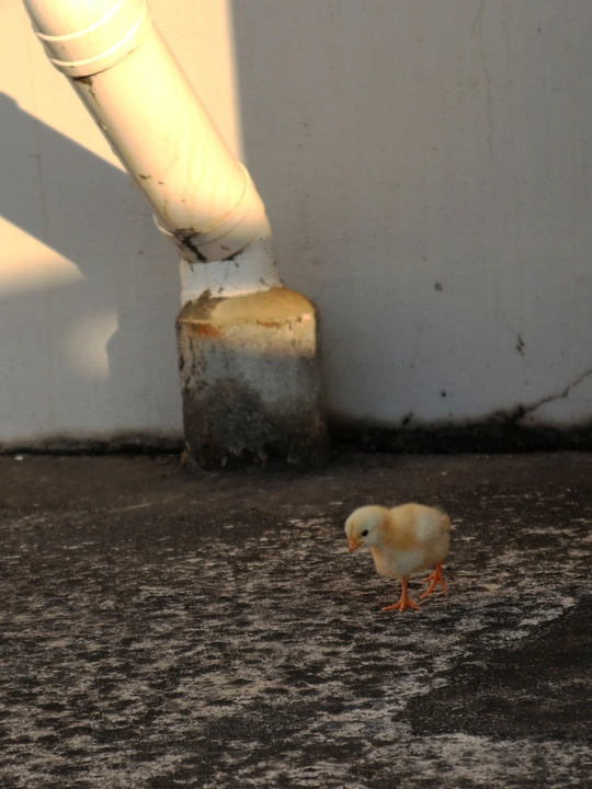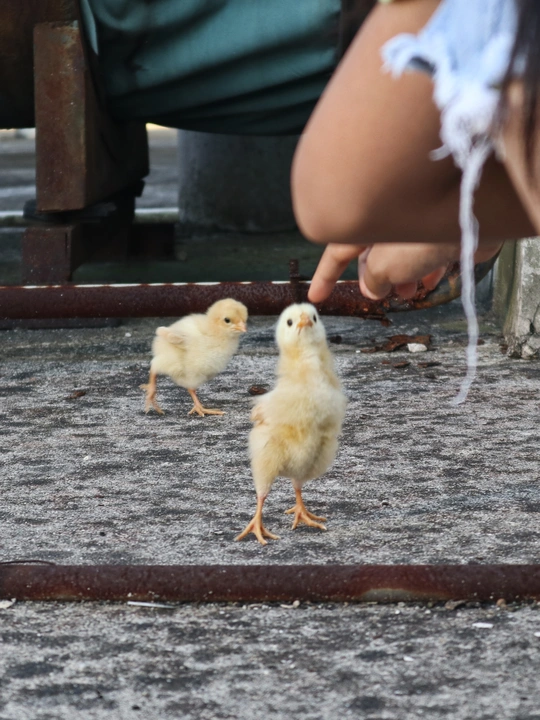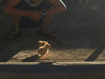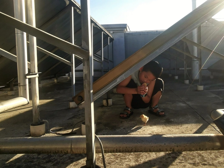 在40层的楼顶,看到两只毛茸茸的鸡崽崽,忍不住追着跑了好一阵,小鸡各种萌萌的、欢快的姿态,瞬间感染了我们