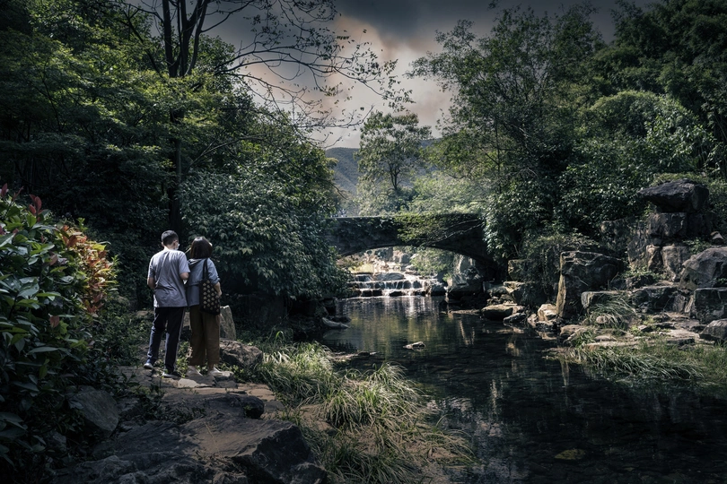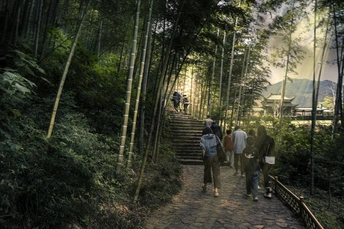 秋日竹林寻幽 ————() 攀爬千阶赏青竹, 曲曲小路禁多足。 悠悠竹林如碧海, 我如小船寻幽处。 清清潇潇不同俗, 四君之一称千古。 昨日观它刚出土, 眨眼之间高如树。