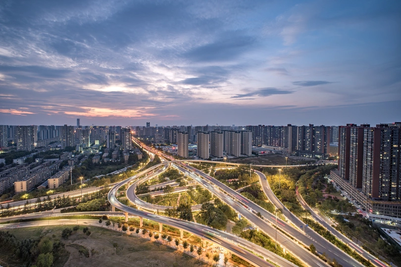 西安辛家庙立交的蓝调时刻