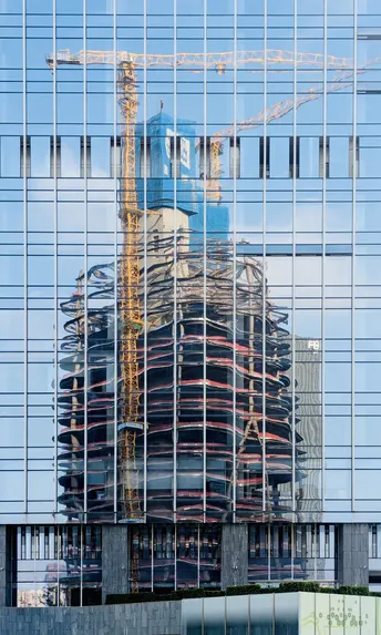 偶遇映射在幕墙上的在建写字楼,拍一张留念。