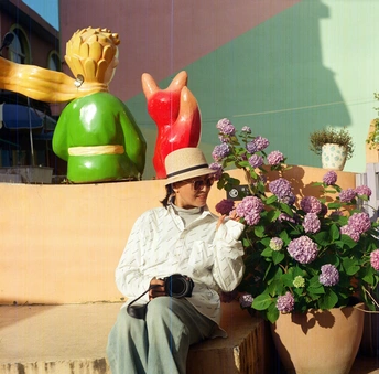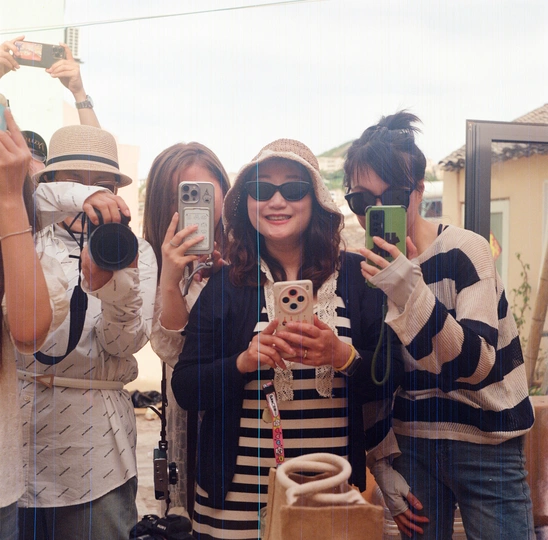 一起外出采风的同事们,一帮充满活力的伙伴。男伙伴都忙着拍妹子,所以女士们是我的模特。 摄于温岭小箬村。长方形图: 玛米亚645;正方形图:禄来双反。lomo400彩负。