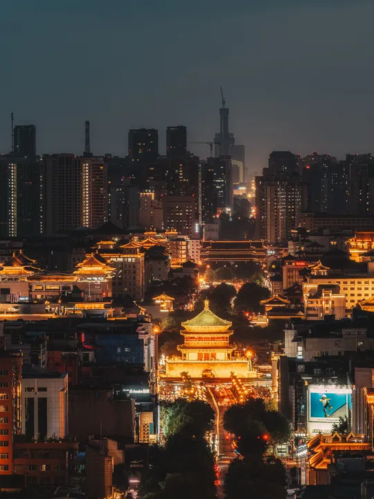 灯火阑珊下的钟楼和长乐门分享给大家😎 📷:索尼A7M4/A7R3 📍:西安市|长乐门