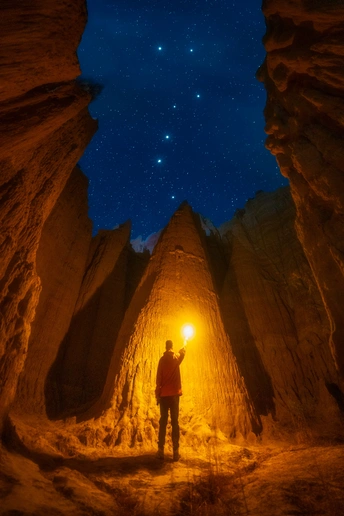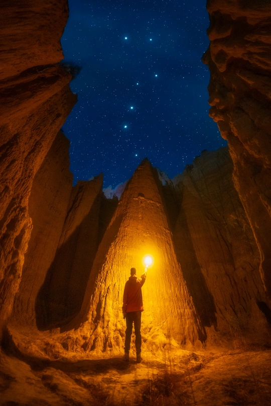 2024年5月初,我在云南浪巴浦土林中打灯探索,在一处洞穴中拍下了我与北斗七星的合影