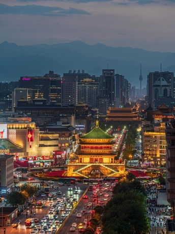 📝: 高视角下背靠秦岭的西安|钟楼|永宁门|电视塔 “南北中轴线” → 这样的千年古都你爱了么?😃😃😃 📷:索尼A7R3 📍:西安市|北大街 PS: 拍了很多不同角度的钟楼,这个视角算是从接触爬楼开始最梦寐以求的一个角度吧,可惜能见度还是不够好,但是钟楼和永宁门亮灯的一瞬间还是很震撼人心的,瞬间梦回大唐😎😎😎