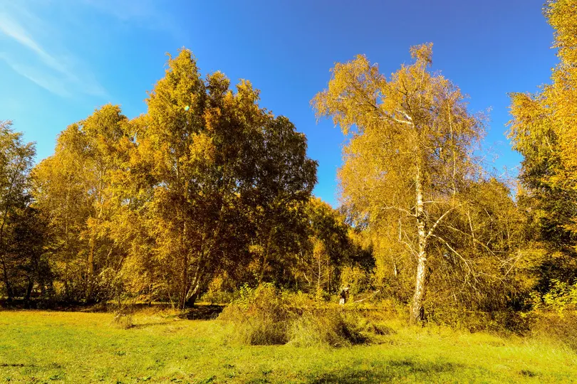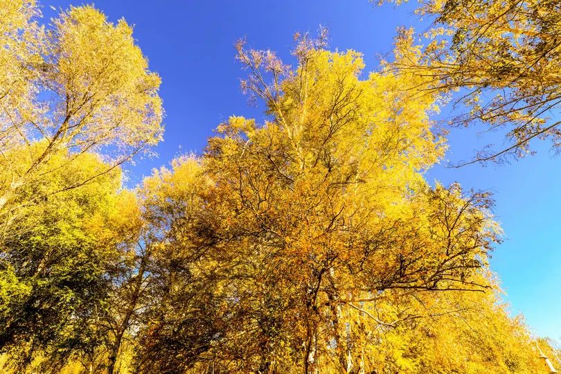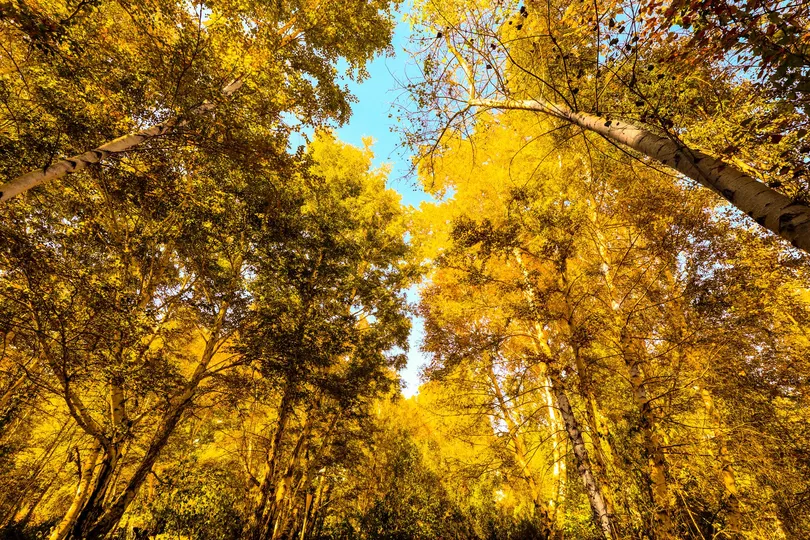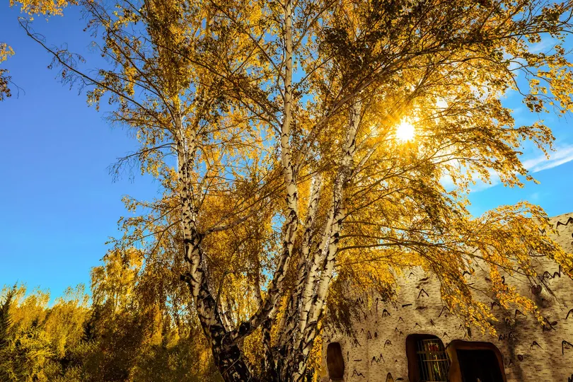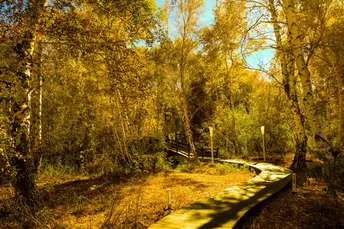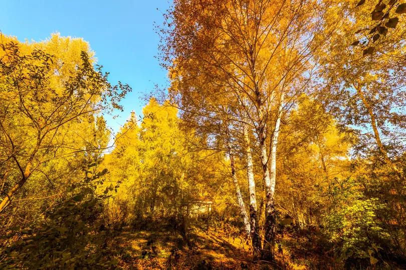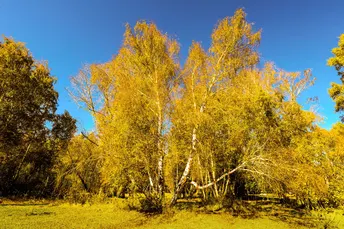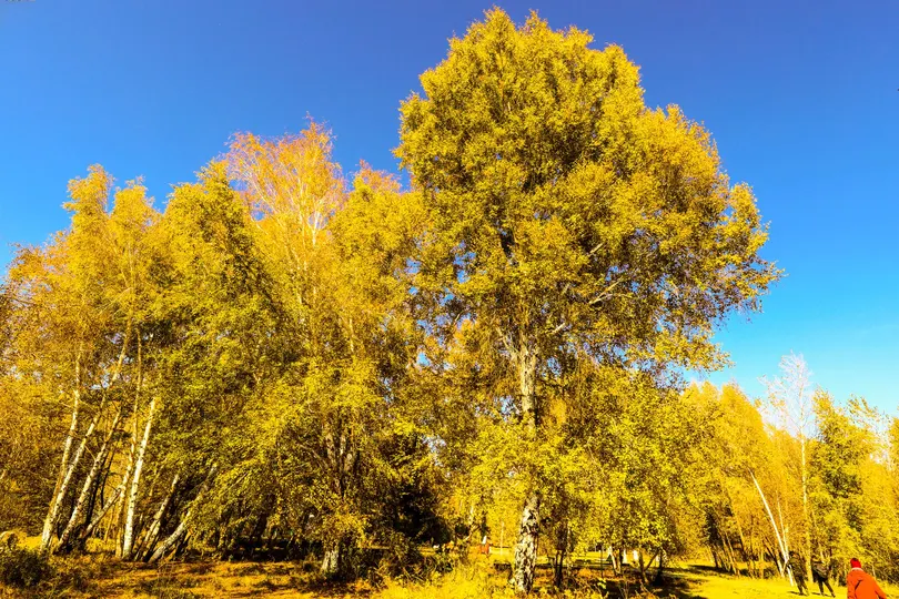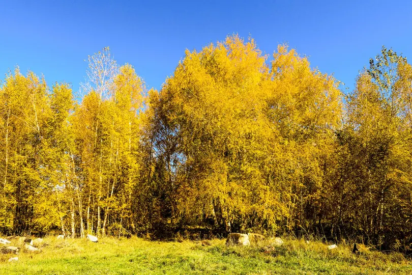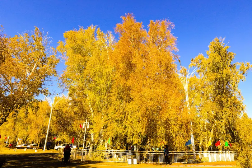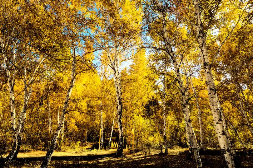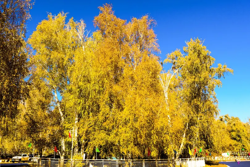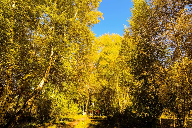 金阳金光金色染,白干白枝白桦林。边疆边境边关情,美画美图美风光。 —哈巴河白桦林写真记实 哈巴河白桦林位于新疆阿勒泰地区哈巴河县库勒拜乡境内,是我国西北最大的天然生长的白桦林带。这片白桦林长约28公里,宽约1.5公里,主要分布在哈巴河两岸及分散成数支流交汇而成的宽浅河漫滩上。白桦林树高20-40米,极具观赏价值,其白色的树干在春夏两季绿草如茵、野花点缀的背景下显得高洁脱俗,而在秋季则因桦叶染黄泛红而变得绚烂多彩。冬季的白桦林则被雪覆盖,形成一片银装素裹的景象,成为踏雪寻幽的好去处。