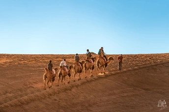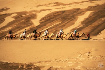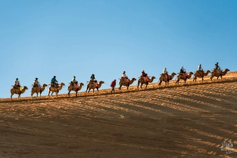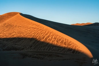 凌晨三点半,在瓜州的无界拍完星空后,我就立马掉头往回赶,去民宿喊醒老婆到鸣沙山看日出。六点之前,跟着人流我们已经爬上了山头,就等着太阳升起了。本来,我是打算用长焦拍个鸣沙山的日出延时的,甚至我还把外套脱下来,用袖子裹住镜头来防沙,只是可惜,最后的成片效果不是很理想。