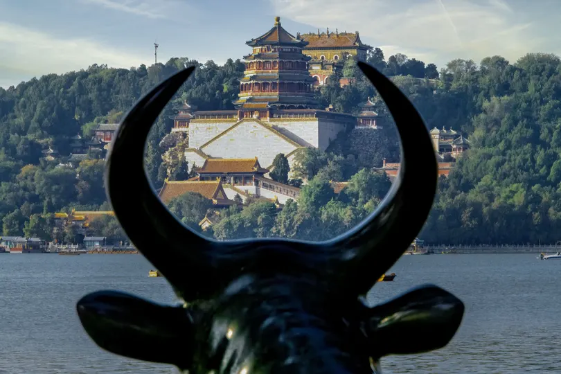 湖畔铜牛昂首立,山间佛阁映云奇。 悠悠岁月湖光碧,历历春秋史韵知。 铜牛静守时光缓,佛阁高瞻岁月移。 古意深深情未改,今辉熠熠梦如诗。 潋滟湖波连浩宇,辉煌阁影耀新姿。 微风拂水涟漪起,远念牵心忆旧时。 铜牛与阁遥相望,共绘江山美韵词。